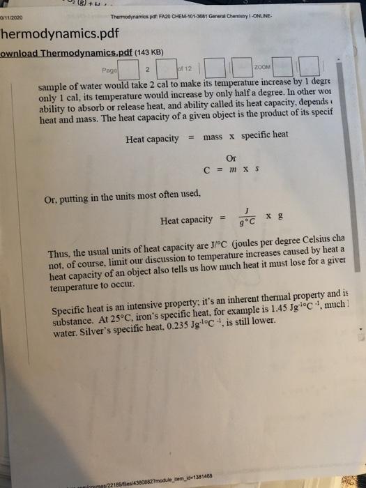 Solved 0 11 2020 Pagol 2 1or 12 Thermodynamics Pot Fa20 Chegg Com